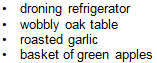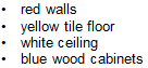 6. A writer is developing a short story in which he would like to convey a vivid impression of the kitchen where part of the story is set. Which of the following groups of descriptive details about the kitchen would be most effective for the writer to use in the story?