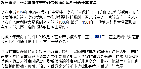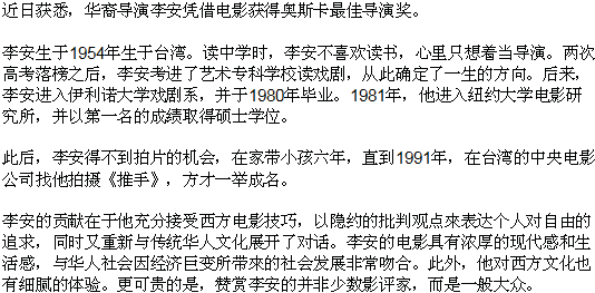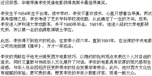 The author of this passage would most likely agree with the statement that Ang Lee's success is due to his: