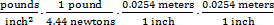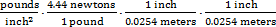 = 1, since each equation can be derived from the conversion factor. Since any number can be multiplied by 1 without changing its value, these expressions can be arranged so that the common units appearing in both the numerator and denominator cancel, leaving only the desired units. Cancelling pounds and square inches (inch2 = inch•inch) shows that the correct response has units of